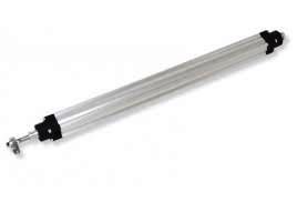 Pneumatische motor G1, voor boven scharnierende ramen en koepels. Geschikt voor gebruik voor rookafzuiging in overeenstemming met de UNI 9494-normen. Met een elektronische eindschakelaar voor het openen en sluiten en een beveiliging tegen overbelasting.